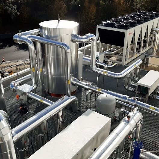 Enfin il y a aussi la climatisation à eau glacé, principalement installé pour des sites tertiaires de grande envergure comme un centre commercial, un immeuble à plus étage, des bureaux ou même des locaux industriel.
